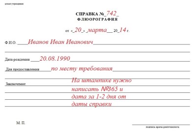 Мед справка о флюорографии образец